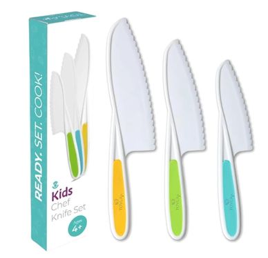 Tovla Jr. Kid Safe Knife Set for Real Cooking | 3-Piece Toddler Kitchen Knives
